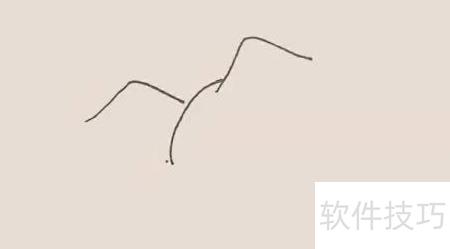 1、 绘制两条倾斜的拱形弧线,并在中间添加一条连接它们的弧线。