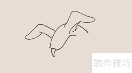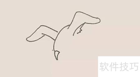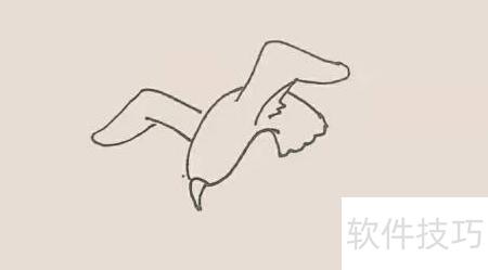 4、 在海鸥身体下方添一条弧线,加两条短竖线,为绘制尾巴做准备。