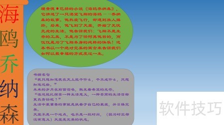 9、 图框内书写海鸥乔纳森带来的深远影响。