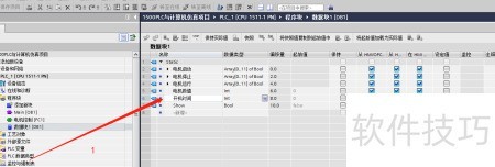 1、 完成PLC与触摸屏通信连接后,在PLC中创建开机时间和Show两个变量。