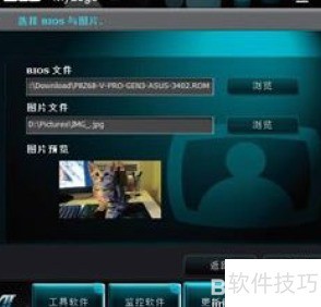 3、 刷新BIOS存在一定风险,因此第三项操作更适合初学者。该功能会自动备份原有BIOS文件。选择此项并点击下一步后,先导入BIOS文件,再选取一张自定义图片替换华硕默认LOGO。我选用了一张自家爱猫的照片作为新图标,既安全又个性化。