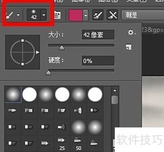 5、 调整混合器画笔工具大小,打开预设拾取器进行修改。