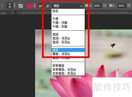 4、 在状态栏中选择潮湿预设样式。