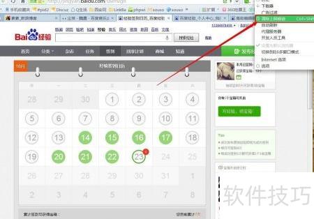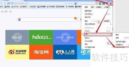 6、 其他浏览器操作类似,例如百度浏览器,点击顶部菜单栏的,在下拉选项中依次选择→即可完成操作。