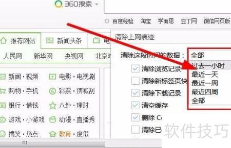 4、 可选择清除过去一小时、一天或一周内的浏览记录,通常默认为全部清除。若无特殊保留需求,建议直接清除所有痕迹以确保隐私安全。