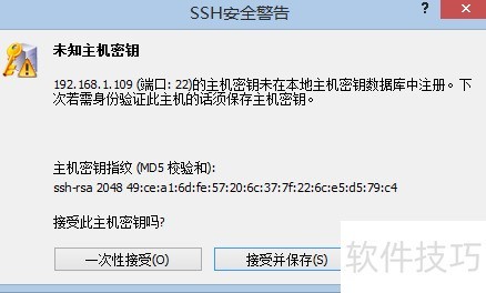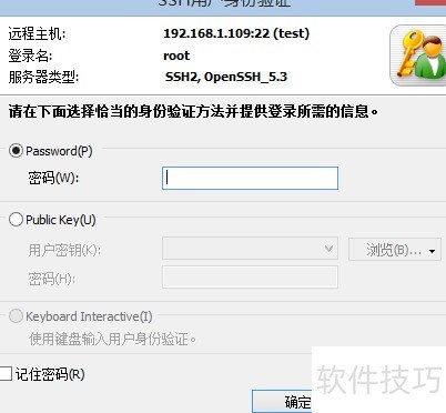 4、 在新打开的连接窗口中,选择并双击之前创建的test连接。出现SSH安全警告时,点击接受并保存密钥文件。随后输入密码,若此前未填写账户名,则需同时输入用户名和密码,确认后即可成功登录系统。