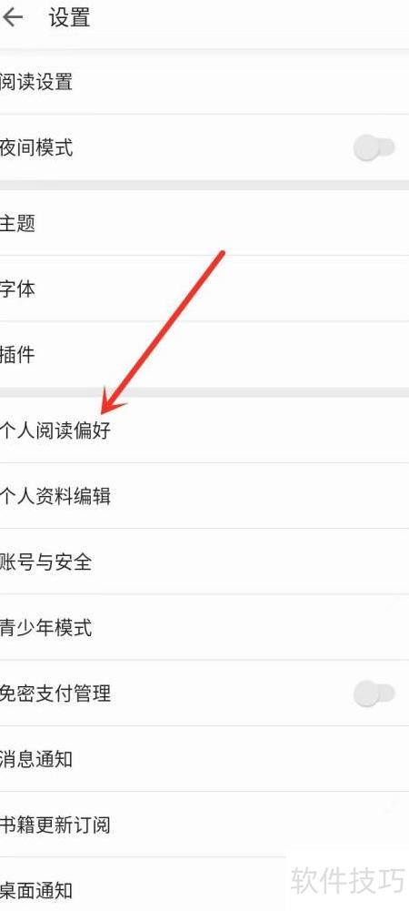 2、 进入设置页面,选择个人阅读偏好进行配置。