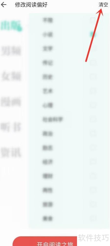 3、 进入阅读偏好设置,点击右上角清空按钮即可完成操作。