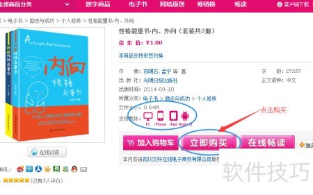 2、 进入电子书页面,挑选心仪书籍后点击立即付款,操作步骤所示。