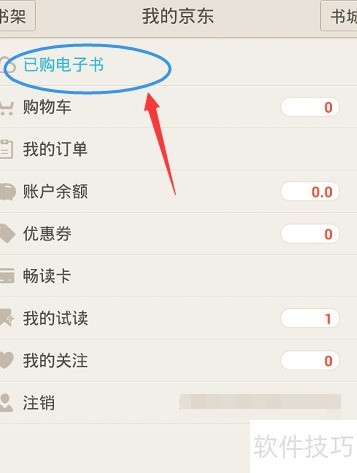 7、 安装应用后,登录京东账号,下载已购电子书,操作所示。