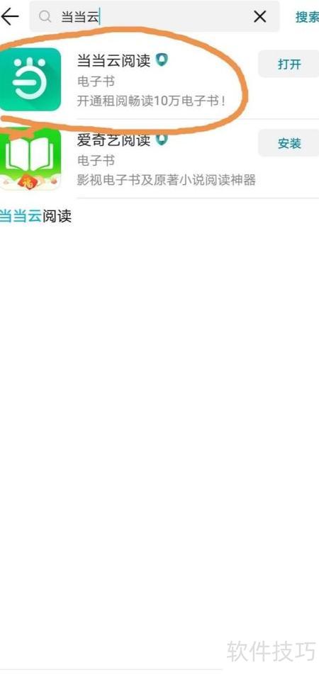 1、 用手机应用商店搜索并下载当当云阅读软件。