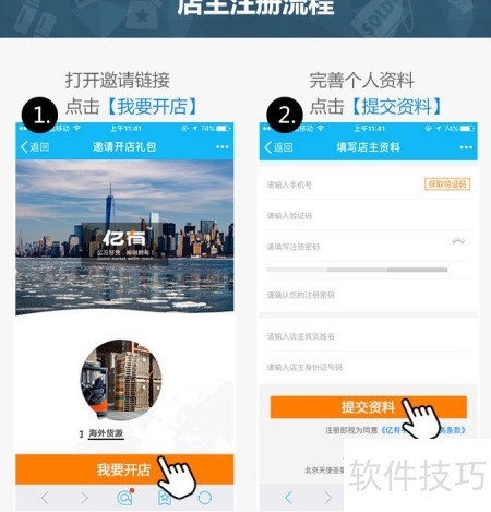 1、 新用户通过邀请链接进入,点击我要开店并填写店主信息即可完成注册。