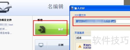 1、 启动软件后,选择新建进入PDF导入界面,根据需求调整页面质量与尺寸等参数,确认设置无误后,点击导入按钮完成操作。