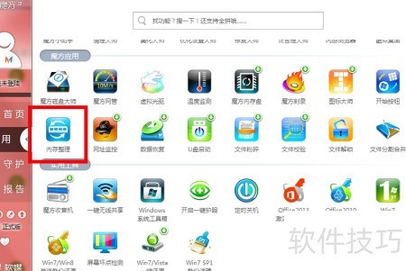 9、 进入应用界面后,点击魔方中的内存清理功能。