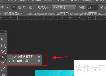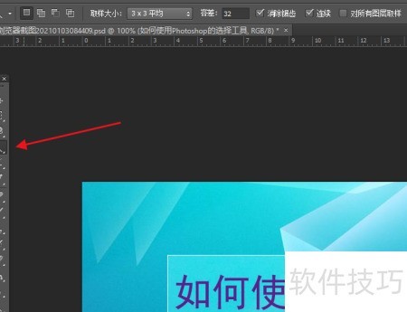 1、 在Photoshop界面中,从工具栏选择选取工具。