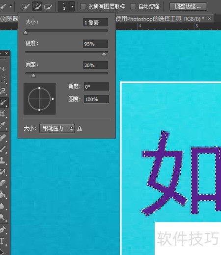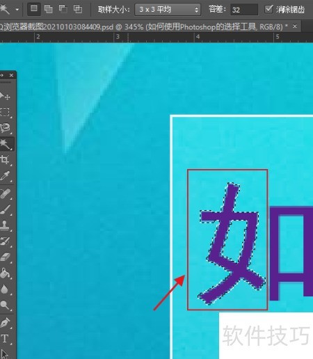 3、 调整好快速选择工具的参数后,点击所需文字即可立即完成选中。