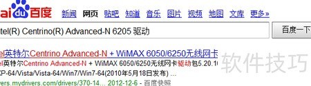 5、 在百度搜索栏输入网卡型号并加上驱动二字,筛选出最新发布日期的驱动程序下载安装即可。