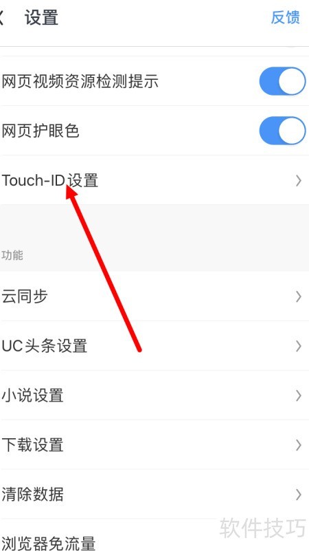 3、 进入设置页面后,选择并点击Touch ID设置选项。