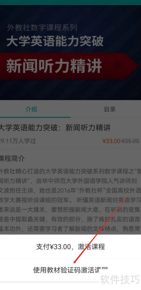 3、 第三步输入教材验证码激活课程,随后进入扫码界面,对准教材背面条形码扫描即可完成。