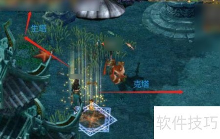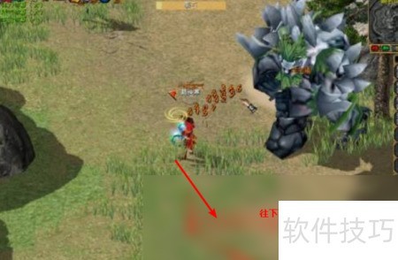 3、 击杀吞漠朱厌后,先向下移动一段,再向左上方跑至传送点。