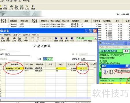 8、 在物料明细扫描界面,按下扫描键读取条码,输入数量后按OK确认,全程快捷操作,一步完成录入。