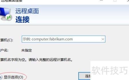 2、 这样即可启动远程桌面连接程序,也可通过查找程序源文件或快捷方式打开,效果相同。接着点击下方的显示选项即可展开更多设置。