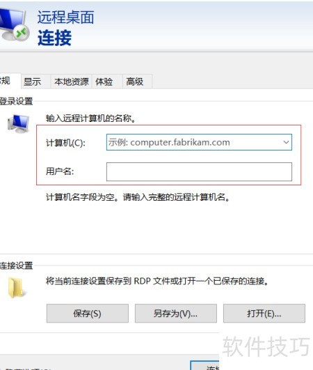 3、 在常规标签页输入目标计算机名或IP地址,然后填写登录所用的用户名。