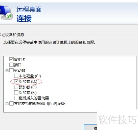 5、 根据需求勾选相应选项,支持多选,即可将本地磁盘映射至远程电脑。