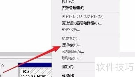 4、 右键点击分区,选择压缩卷选项,进入后续操作步骤。