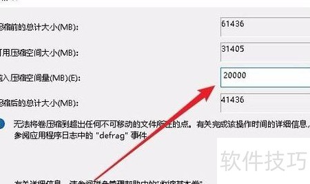 5、 在窗口中输入新分区大小,如需20G,可输入1024乘以20的计算结果。