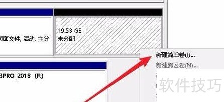 6、 右键点击新分区,选择新建简单卷,按提示操作即可继续。