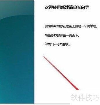 7、 此时将弹出新建简单卷向导窗口,后续操作按提示进行即可,通常只需点击下一步按钮。注意在设置时选择NTFS文件系统。