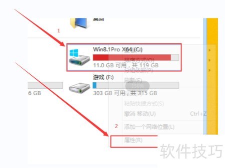 2、 右键点击本地磁盘,选择属性查看相关信息。