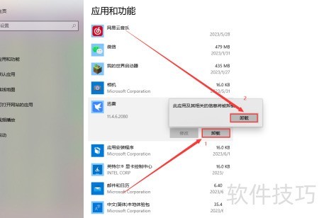 9、 在程序列表中找到需卸载的软件,点击卸载并按提示逐步完成操作即可。