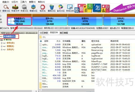 1、 启动DiskGenius,选中需备份的系统分区(例如C盘)即可开始操作。