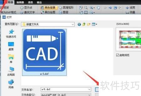 2、 启动CAD编辑软件,进入主界面后点击打开按钮,选取所需DXF文件即可加载。