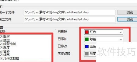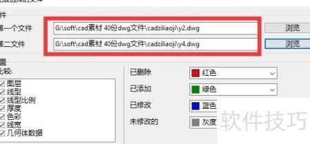 3、 在对比文件窗口的文件栏中,点击浏览按钮,依次选择并打开两个需对比的DXF图纸文件。
