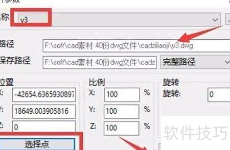 6、 在合并文件窗口中,浏览并选中另一个需合并的DXF文件,点击选择点按钮,设定新文件的插入位置。
