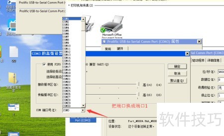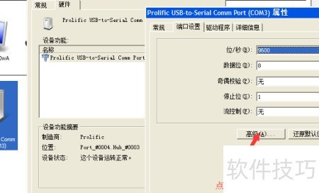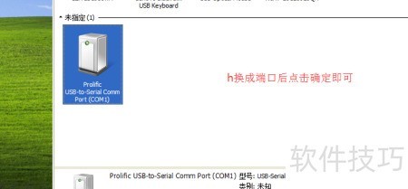 9、 连接硬件后双击USB设备,进入端口设置中的高级选项,将OM端口更改为COM1,保存设置并确认即可完成配置。