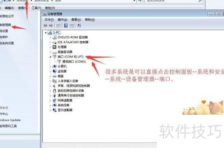 10、 可通过控制面板中的系统与安全选项,进入设备管理器的端口设置进行操作。