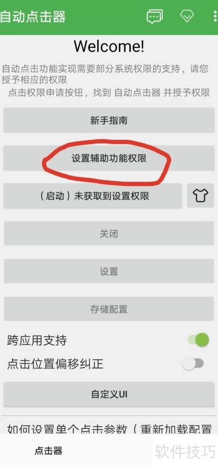 2、 点击按钮开启辅助功能权限,操作示。