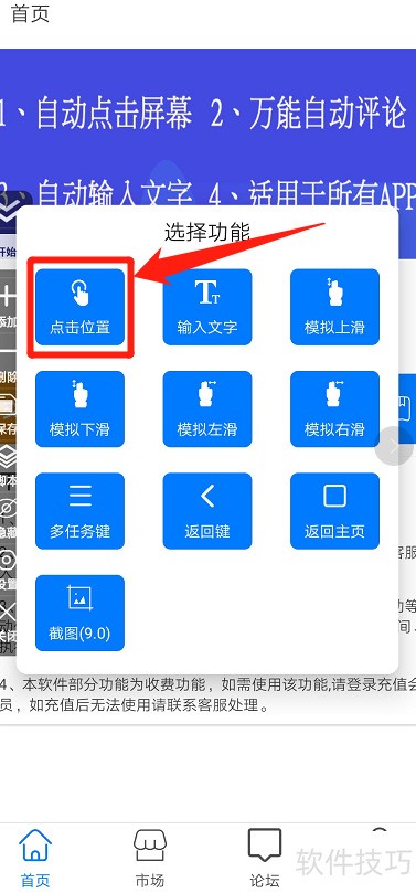 2、 在指定位置点击功能框,即可添加点击功能。