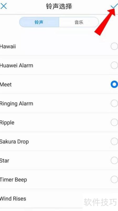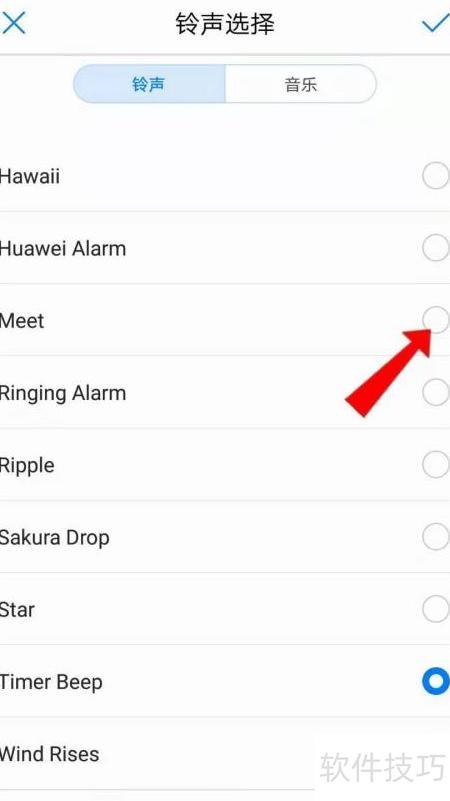 6、 点击右上角勾图标,即可将计时器铃声设为Meet。