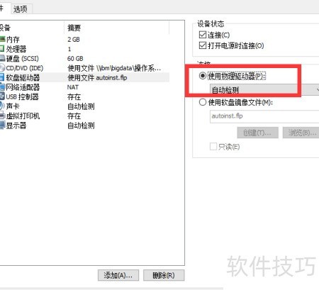 5、 因软驱设置异常,安装VMware时可能出现查找错误。建议将软驱设为自动检测或直接移除该设备,以解决安装问题。