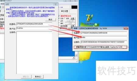 3、 第三步,启动注册机,将机器码复制粘贴至对应位置,用户名可随意输入英文字母即可完成操作。