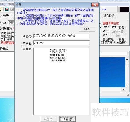 4、 将生成的注册码复制并粘贴至屏幕录制专家的注册码输入框,确认无误后点击注册即可完成激活。