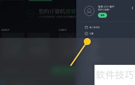 1、 打开AVG Antivirus软件,点击界面右侧的设置选项。