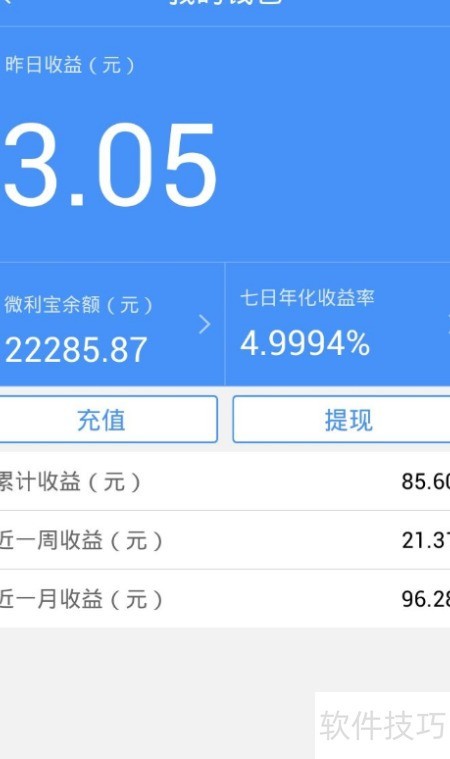 2、 进入首页点击累计收益区域,即可查看钱包页面中的昨日收益、账户余额及七日年化收益率。点击余额可了解详细的资金变动记录,点击七日年化率则可查看近期收益率的波动趋势,方便掌握理财动态。