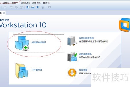 2、 所示,启动 VMware Workstation 10 程序界面,点击创建新的虚拟机按钮,随后在向导页面中选择典型(推荐)模式继续操作。