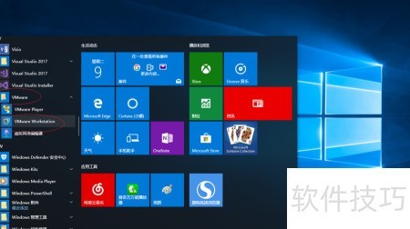 1、 启动Windows 10系统后,点击任务栏上的开始按钮,依次选择VMware菜单中的VMware Workstation程序以运行。